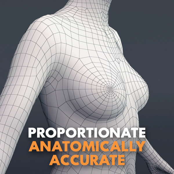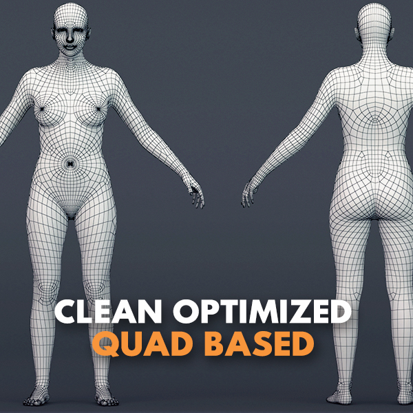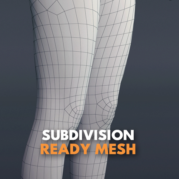 •  Clean, optimized quad-based topology for smooth deformations during rigging and animation